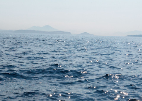 Das Regno di Nettuno ist ein 11.000 Hektar großes Meeresschutzgebiet im Golf von Neapel. Die geschlossene Wasseroberfläche läßt nicht erahnen, dass darunter die bis zu 1000 Meter tiefe Schlucht von Cuma liegt. Das unterseeische Canyonsystem ist ein Lebensraum großer Meeressäuger, deren Populationen beständig erforscht werden. Dabei ist das wichtigste Mittel das Monitoring der Meerestiere mit Camera und Hydrophon. Petra Spielhagen beteiligte sich auf einem Forschungsschiff und versuchte tagelang Delfine oder Wale zu sehen. In der bewegten und geschlossenen Oberfläche des Meeres sind die Meeresbewohner nur sehr schwer zu sichten. Die Nichteinsehbarkeit des gigantischen Unterwasserraumes war beeindruckend. Die tagelange Seh-Suche ebenfalls. Nach ihren fotografischen Arbeiten zur industrialisierten Landschaft in der Nacht, ist der tiefe Meeresraum ein sehr besonderer Landschaftsraum im Tageslicht.